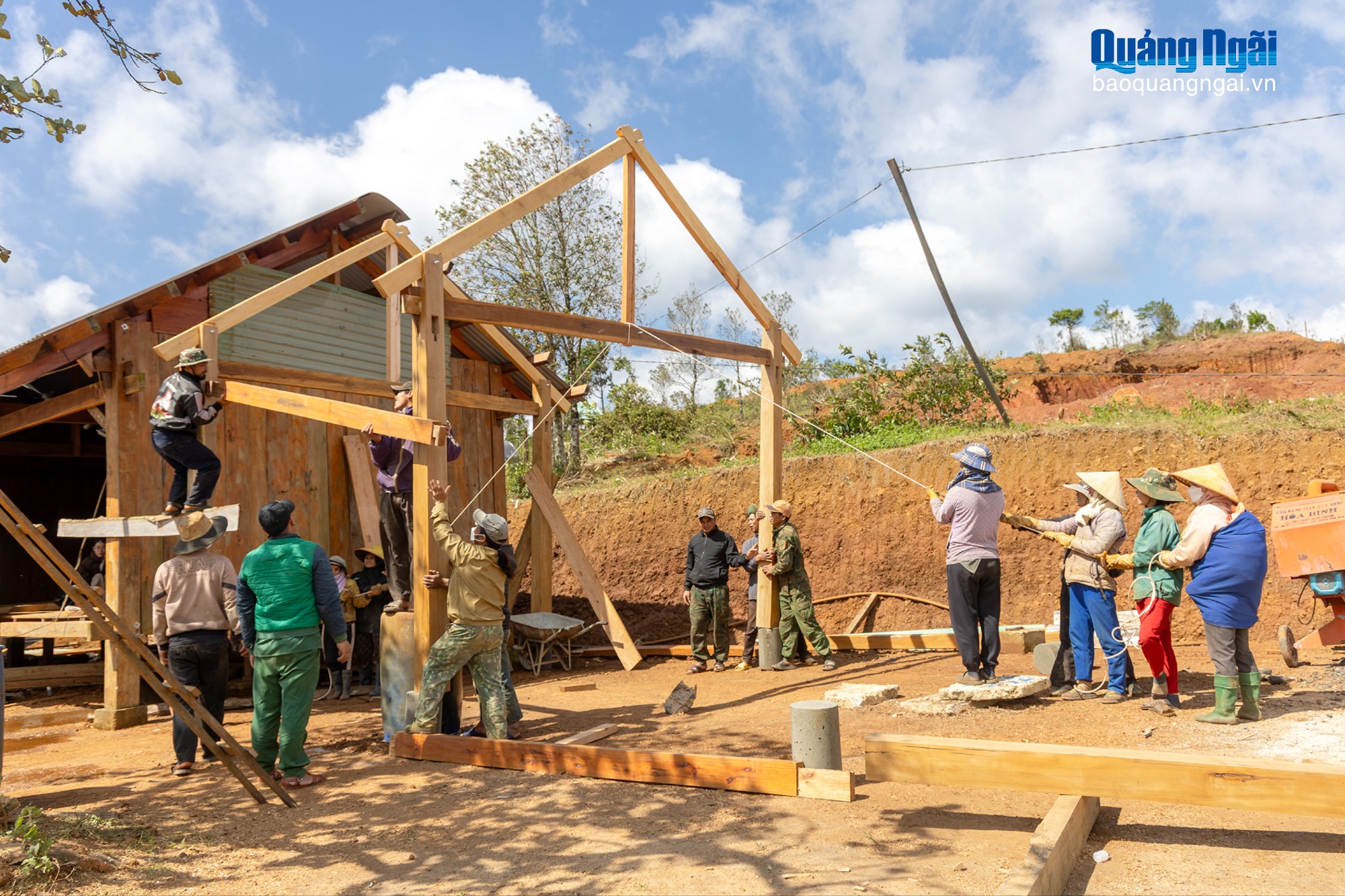 Già làng A Nấc giúp người dân trong thôn dựng nhà sàn truyền thống làm homestay phục vụ khách du lịch.