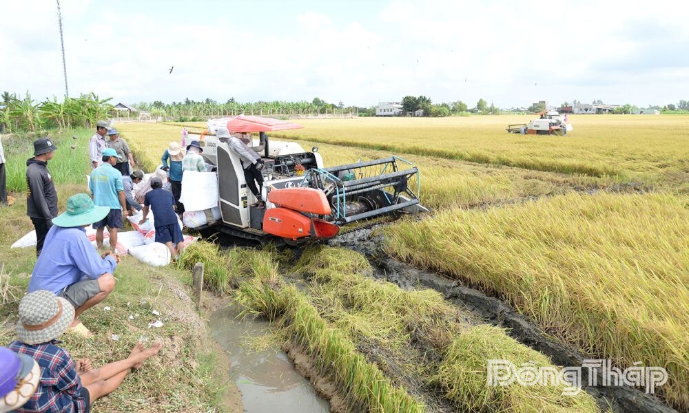 Lúc chúng tôi đến là thời điểm ông Trần Ngọc Hài (ấp Thạnh Lợi, xã Long Bình, tỉnh Đồng Tháp) đang xem máy gặt đập liên hợp thu hoạch 5 công lúa Đài Thơm 8 của gia đình. Theo ông Hài, năm nay, thời tiết thuận lợi nên lúa trúng mùa. Tuy nhiên, giá lúa vẫn chưa như kỳ vọng. Ông Hài chia sẻ: “Vụ thu đông vừa rồi, tôi bán lúa Đài Thơm 8 giá chỉ 5.600 đồng/kg. Vụ này, giá lúa tăng khoảng 900 đồng/kg so với vụ trước. Với giá lúa này, nông dân không có lời nhiều. Hơn 3 tháng trời mà lời có mấy trăm ngàn đồng/công thì quá thấp”.