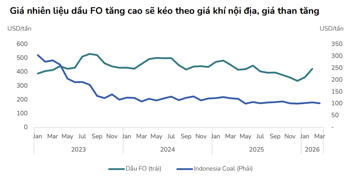Về ảnh hưởng của giá nhiên liệu tăng cao đến các loại hình năng lượng, Chứng khoán BSC đánh giá, nhiệt điện than được tăng cường huy động do giá than tăng chậm hơn các loại nhiên liệu khí đốt nội địa và LNG nhập khẩu. Than dùng trong phát điện có cơ cấu 70% là khai thác trong nước với giá than được kiểm soát chặt chẽ (thường thấp hơn 30-40% so với giá thế giới).