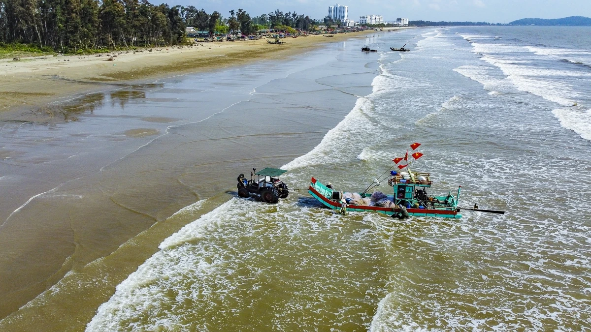Không khí lao động trên các bãi biển trở nên sôi động ngay từ sáng sớm. Khi thuyền cập bến, các công đoạn giũ lưới, gỡ cá, phân loại được tiến hành khẩn trương.