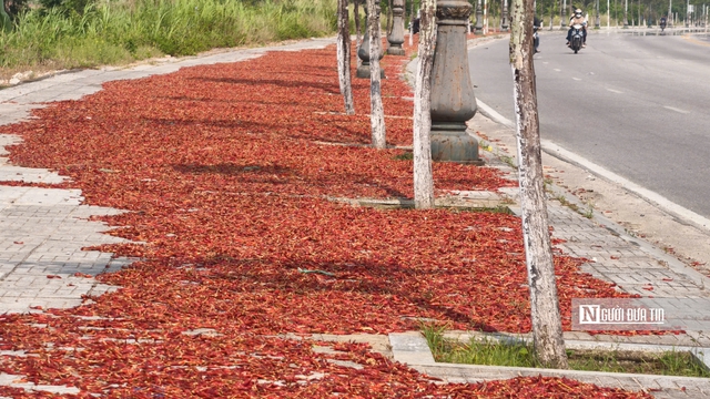 Áp lực tiêu thụ khiến nhiều hộ dân phải chuyển sang phơi khô để giảm thiệt hại. Dọc tuyến đường Trường Sa ven sông Trà Khúc, hàng loạt vỉa hè được tận dụng làm nơi phơi ớt, kéo dài hàng km, tạo nên một “dải đỏ” đặc trưng.
