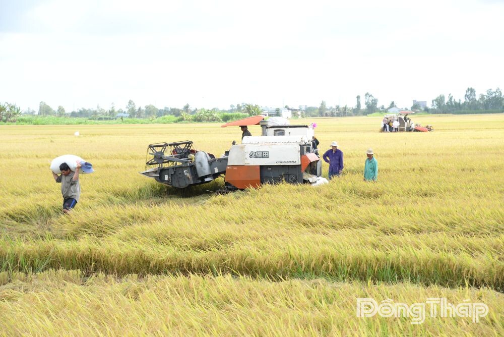 Còn tại xã Long Bình, tỉnh Đồng Tháp, gia đình ông Phạm Văn Thạnh (ấp Long Hải) vừa thu hoạch xong 2 ha lúa đông xuân. Lúa Đài Thơm 8 được bán với giá 6.580 đồng/kg, năng suất đạt khoảng 8 tấn/ha.