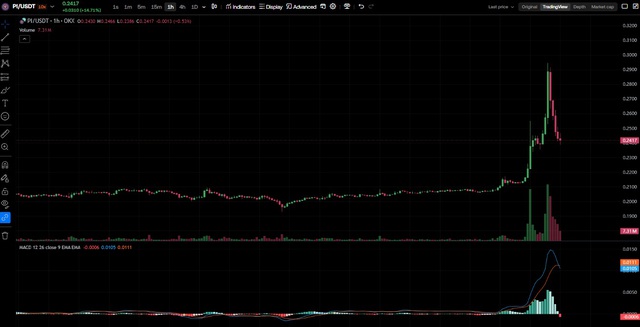 Ra mắt hồi đầu năm 2025, giá Pi được đẩy lên cao cao nhất hơn 3 USDT/ đơn vị. Tuy vậy, đồng Pi không duy trì được đà tăng trưởng do lực bán xả rất mạnh. Đến ngày 10/10, thị giá Pi giảm sâu nhất về mức 0,15 USDT/ đơn vị trước khi có nhịp tăng ngắn hạn.