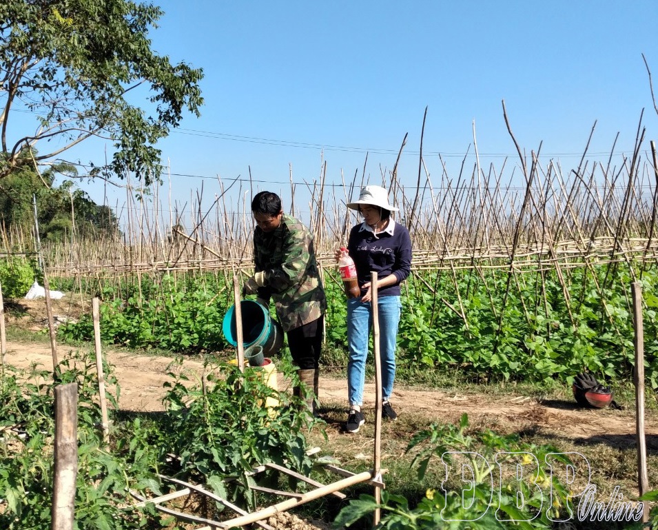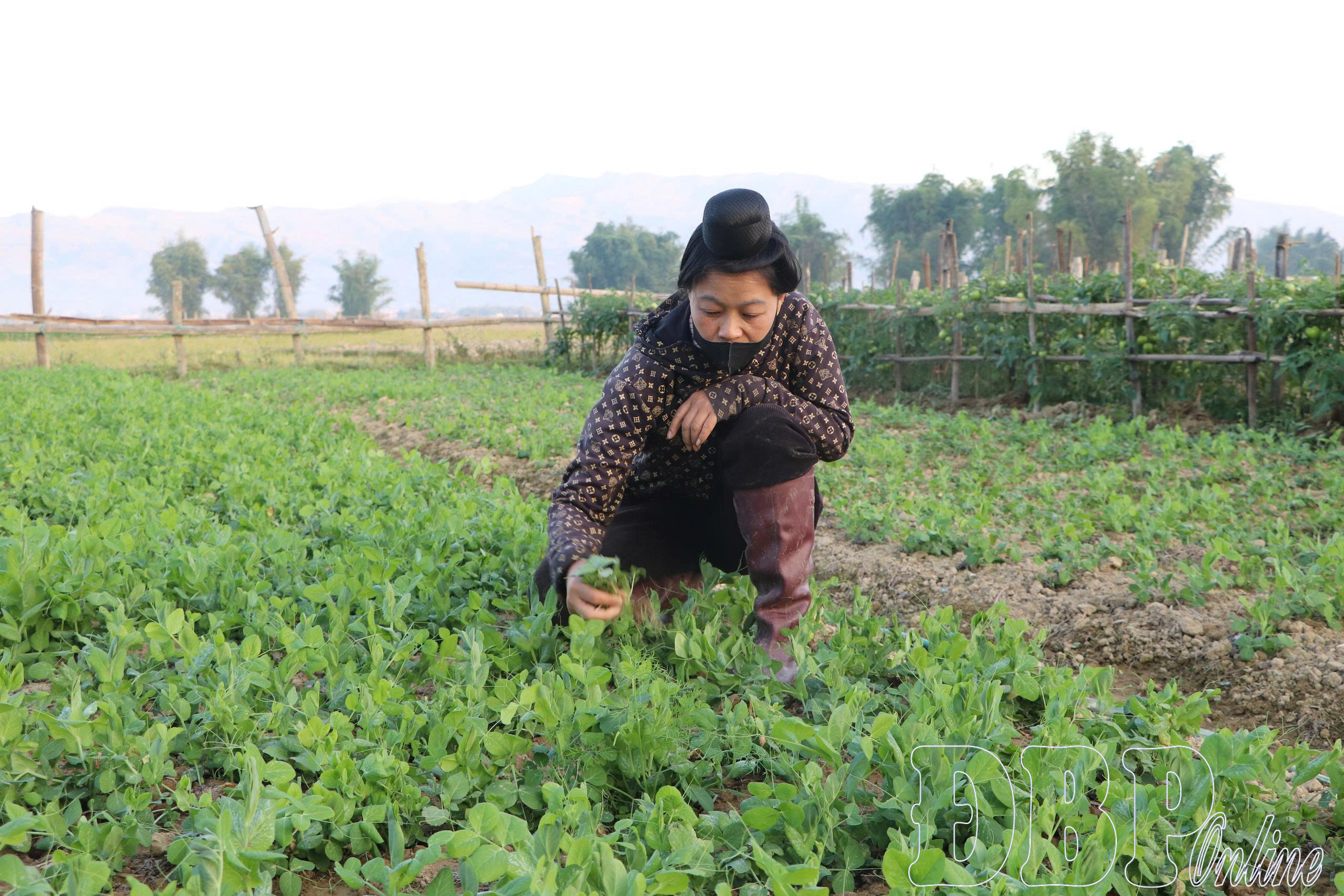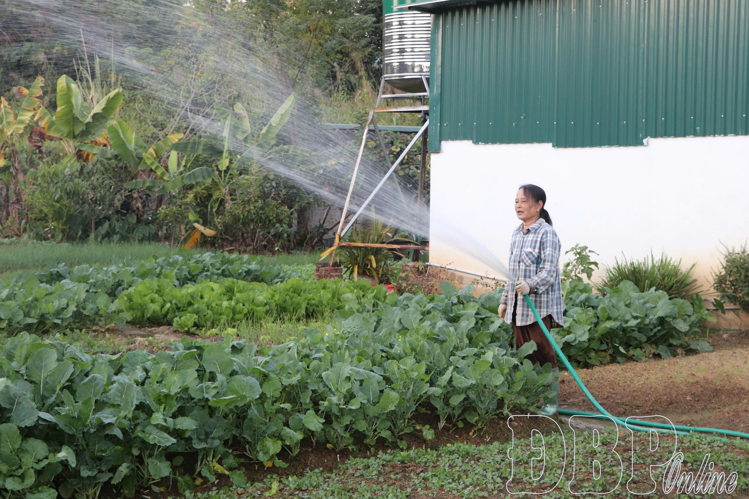 Chị Lò Thị Nương, bản Bó, xã Thanh Nưa chăm sóc vườn rau.