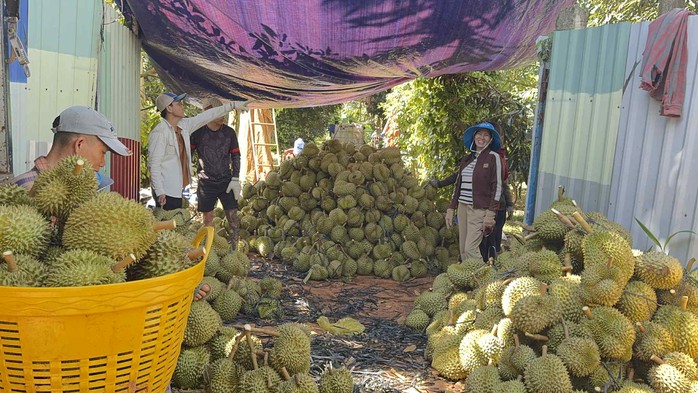 Năm nay, giá sầu riêng có phần hạ nhiệt nhưng nhờ tăng sản lượng nên xuất khẩu sầu riêng vẫn bội thu. Nhiều nhà vườn ở Đắk Lắk cho biết giá sầu riêng thương lái thu mua giảm khá nhiều.
