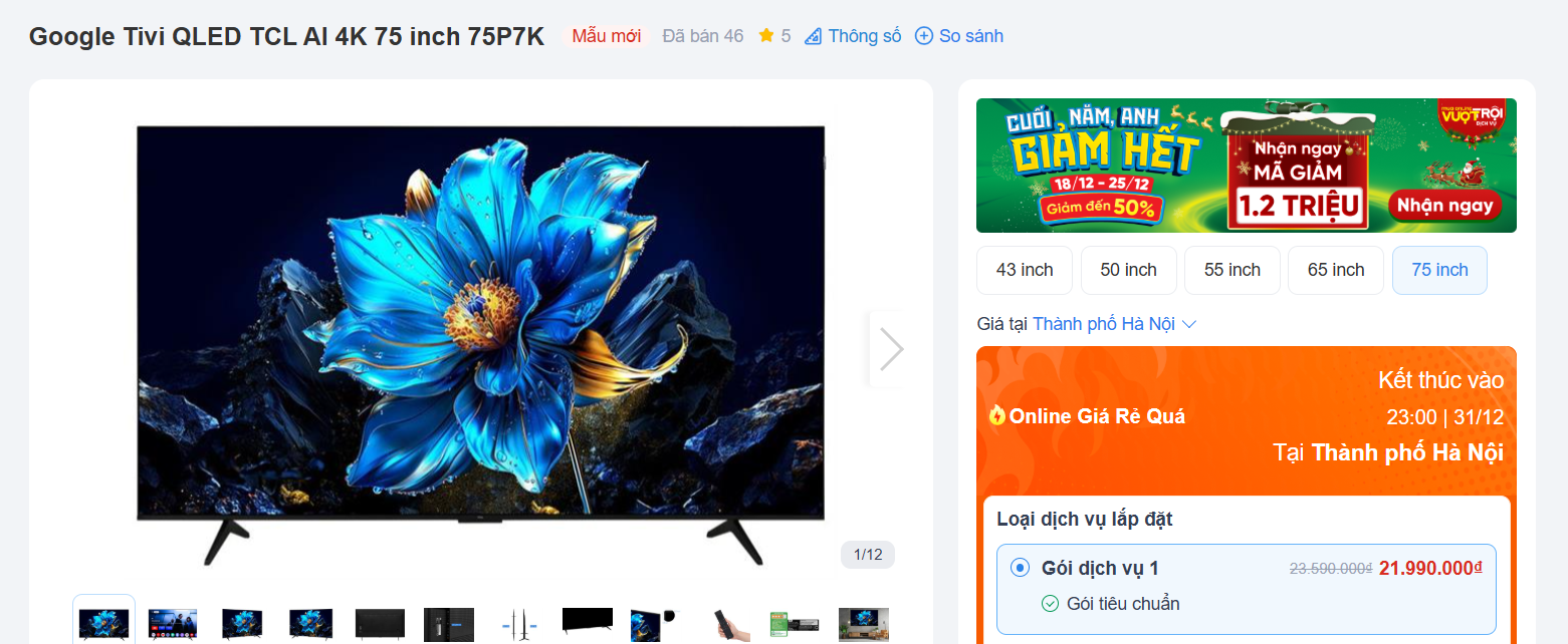 Tháng 12/2025 đang chứng kiến một trong những đợt giảm giá mạnh tay nhất của thị trường Smart TV và dòng TCL nổi lên như cái tên gây bất ngờ lớn khi nhiều mẫu TV được giảm giá sâu tới 56%. Trong bối cảnh nhu cầu nâng cấp không gian giải trí tại gia tăng mạnh dịp cuối năm, mức ưu đãi này nhanh chóng thu hút sự quan tâm của người tiêu dùng Việt, đặc biệt là những gia đình muốn sở hữu TV màn hình lớn, công nghệ mới nhưng vẫn tối ưu chi phí.