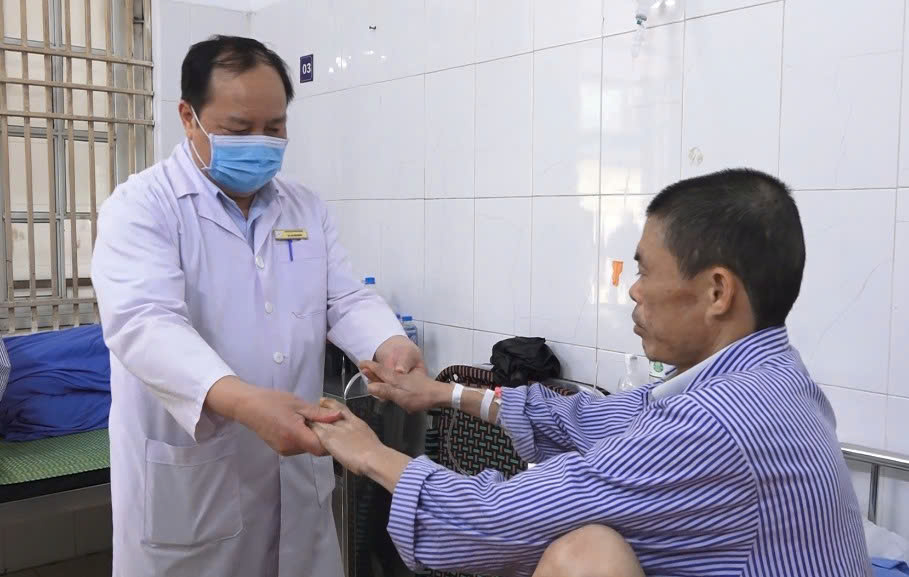 Bác sĩ Hà Văn Hoan, Trưởng Phòng Công tác xã hội, Phụ trách Khoa Sức khỏe tâm thần, Bệnh viện Đa khoa tỉnh thăm khám bệnh nhân.