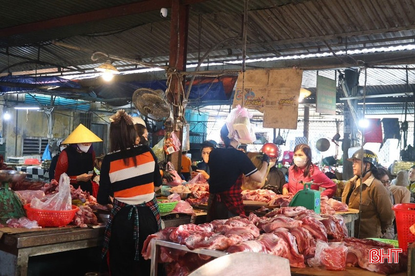 Sáng ngày 12/2, ghi nhận tại chợ Hà Tĩnh, chợ Vườn Ươm (phường Thành Sen), chợ Hội (xã Cẩm Xuyên)… không khí mua bán những ngày cuối năm khá nhộn nhịp, đặc biệt trong khung giờ từ 6 - 9 giờ sáng. Theo khảo sát, giá nhiều mặt hàng thực phẩm tăng dịp cận Tết, đặc biệt giá thịt lợn tăng thêm 20.000 - 30.000 đồng/kg so với thời điểm cách đây vài tuần.