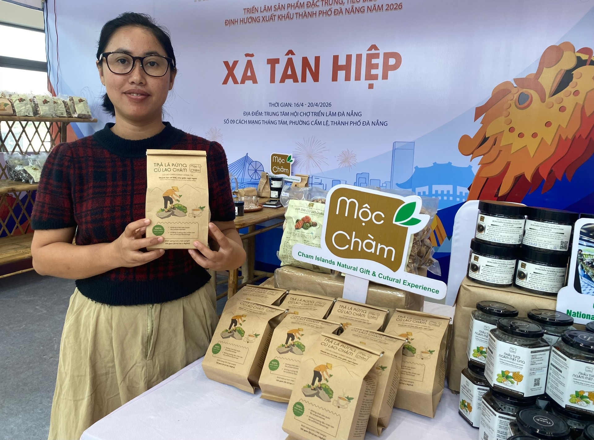 Dù mới ra mắt, sản phẩm trà lá rừng Cù Lao Chàm đã nhanh chóng nhận được sự đón nhận tích cực. Tại Triển lãm sản phẩm đặc trưng tiêu biểu, định hướng xuất khẩu TP. Đà Nẵng năm 2026 (diễn ra từ ngày 16 – 20/4 tại Trung tâm Hội chợ Triển lãm Đà Nẵng), gian hàng của HTX Mộc Chàm luôn thu hút đông đảo khách tham quan. Chỉ sau 4 ngày, hơn 100 đơn vị sản phẩm đã được cung ứng ra thị trường.