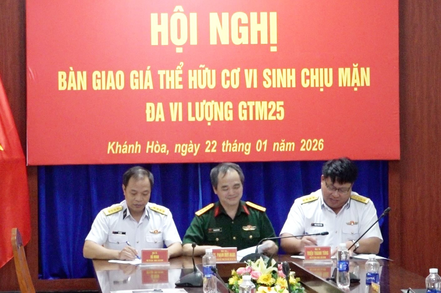 Hội nghị được tổ chức nhằm bàn giao 45 tấn giá thể hữu cơ vi sinh GTM25, trong đó 30 tấn cho Bộ Tư lệnh Vùng 4 và 15 tấn cho Bộ Tư lệnh Vùng 2 Hải quân, bảo đảm đủ số lượng, chất lượng, an toàn, đúng thủ tục và nguyên tắc theo quy định.