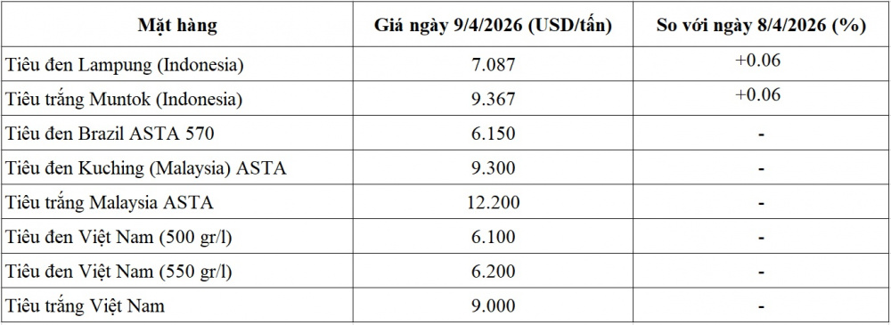 Giá tiêu hôm nay ngày 10/4/2026 tại thị trường thế giới
