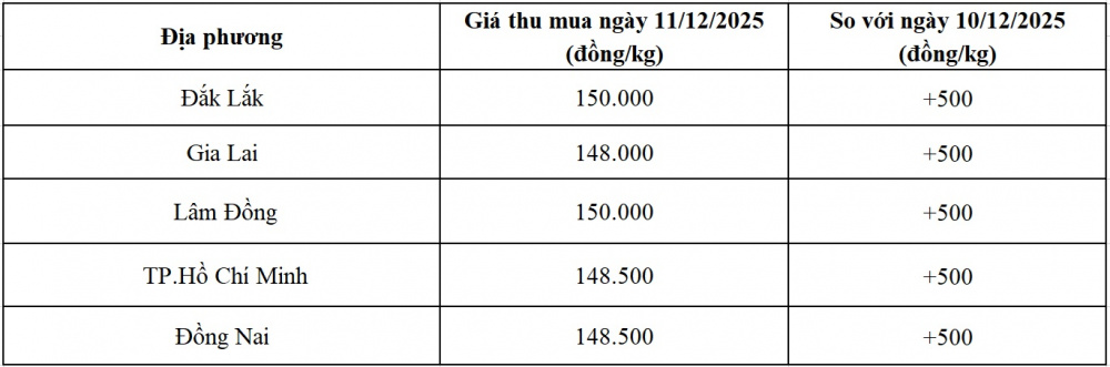Tham khảo giá tiêu hôm nay ngày 11/12/2025 tại thị trường trong nước (Nguồn: Tạp chí Công Thương tổng hợp)