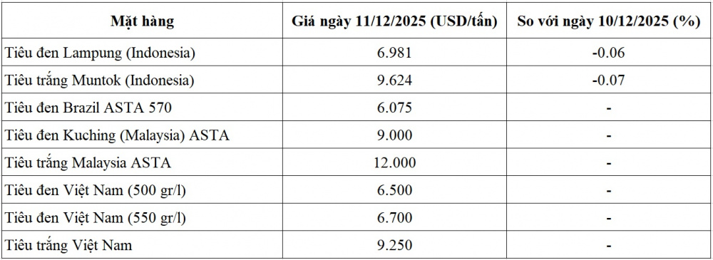 Giá tiêu hôm nay ngày 11/12/2025 tại thị trường thế giới