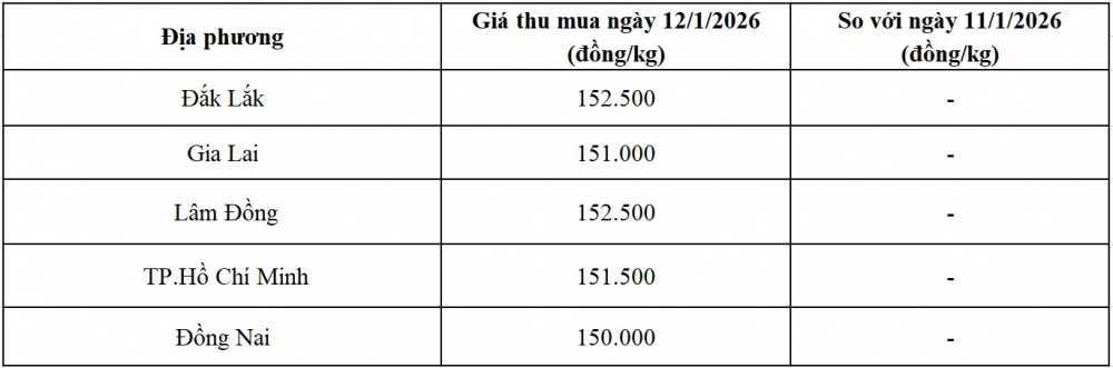 Tham khảo giá tiêu hôm nay ngày 12/1/2026 tại thị trường trong nước (Nguồn: Tạp chí Công Thương tổng hợp)