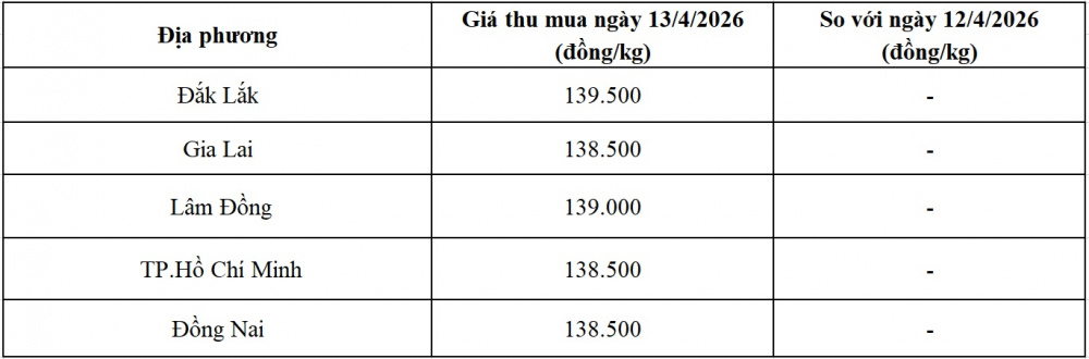 Tại khu vực Đông Nam Bộ, giá tiêu ở TP. Hồ Chí Minh không thay đổi so với hôm qua, hiện ở mức 138.500 đồng/kg; giá tiêu tại tỉnh Đồng Nai ổn định so với hôm qua, hiện ở mức 138.000/kg.