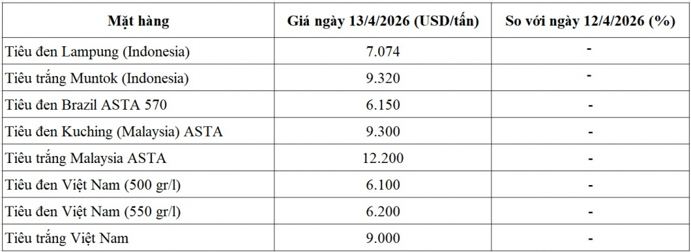 Giá tiêu hôm nay ngày 13/4/2026 tại thị trường thế giới
