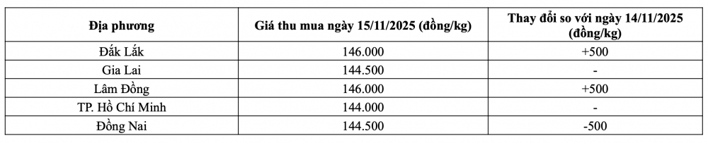 Tham khảo giá tiêu hôm nay ngày 15/11/2025 tại thị trường trong nước (Nguồn: Tạp chí Công Thương tổng hợp)
