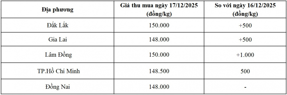 Tham khảo giá tiêu hôm nay ngày 17/12/2025 tại thị trường trong nước (Nguồn: Tạp chí Công Thương tổng hợp)