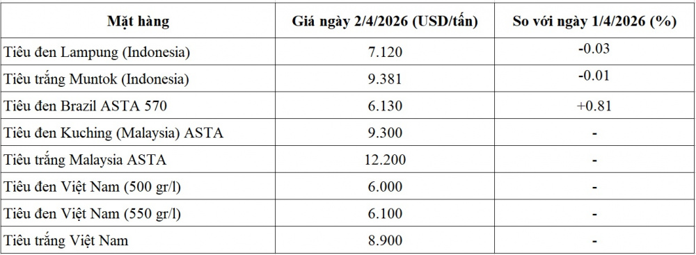 Giá tiêu hôm nay ngày 2/4/2026 tại thị trường thế giới