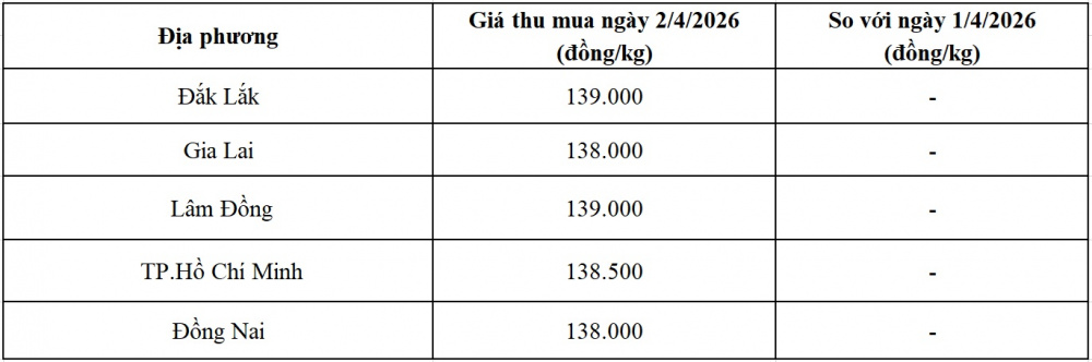 Tham khảo giá tiêu hôm nay ngày 2/4/2026 tại thị trường trong nước (Nguồn: Tạp chí Công Thương tổng hợp)