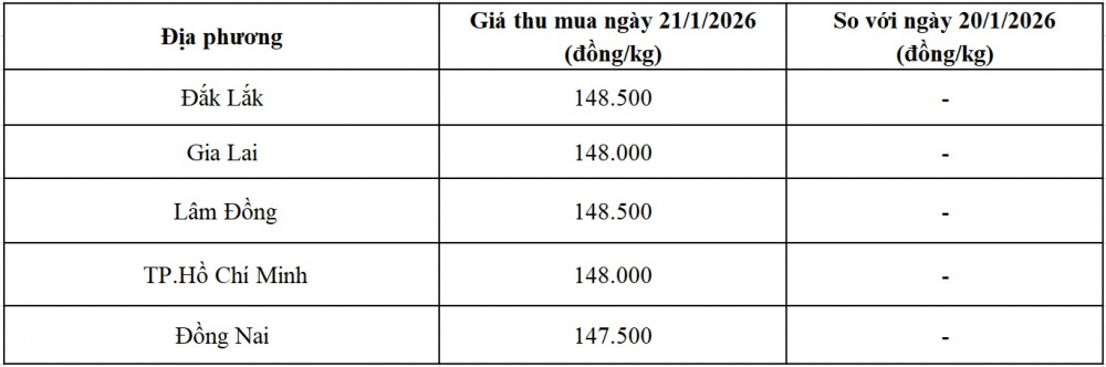 Tham khảo giá tiêu hôm nay ngày 21/1/2026 tại thị trường trong nước (Nguồn: Tạp chí Công Thương tổng hợp)