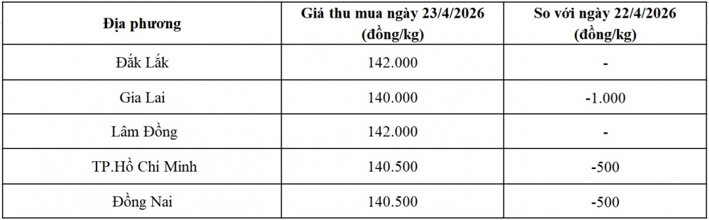 Tham khảo giá tiêu hôm nay ngày 23/4/2026 tại thị trường trong nước (Nguồn: Tạp chí Công Thương tổng hợp)