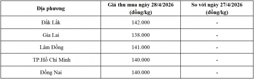 Tại khu vực Tây Nguyên, giá tiêu tại tỉnh Đắk Lắk đi ngang, hiện ở mức 142.000 đồng/kg. Giá tiêu tại tỉnh Gia Lai hiện ở mức 138.000 đồng/kg. Giá tiêu tại tỉnh Lâm Đồng hiện ở mức 141.000 đồng/kg.