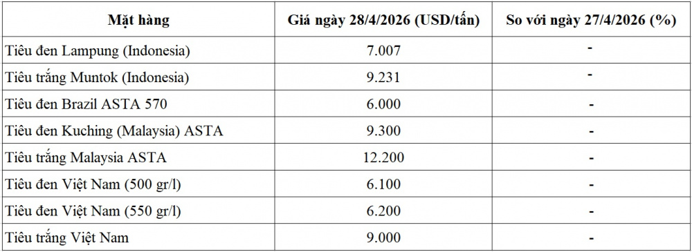 Giá tiêu hôm nay ngày 28/4/2026 tại thị trường thế giới