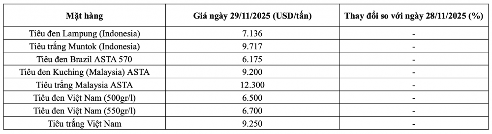 Giá tiêu hôm nay ngày 29/11/2025 tại thị trường thế giới