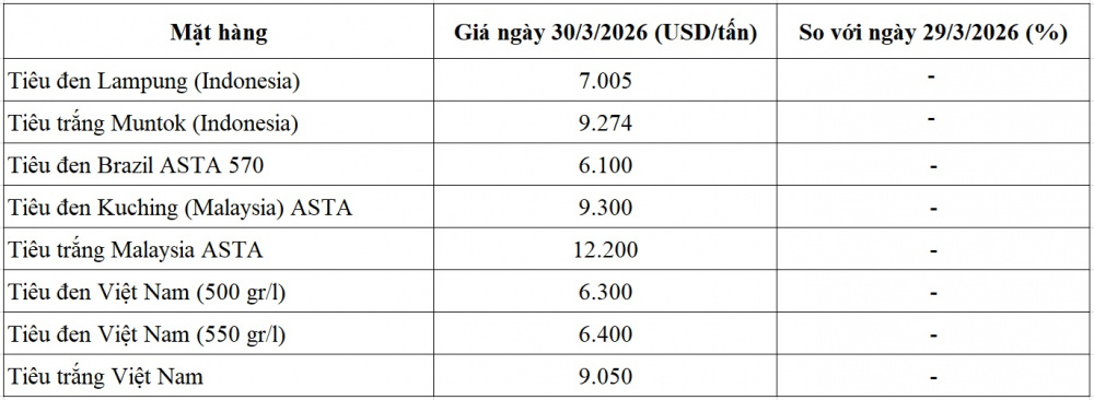 Giá tiêu hôm nay ngày 30/3/2026 tại thị trường thế giới
