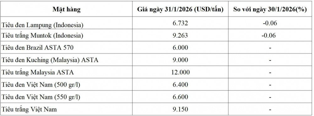 Giá tiêu hôm nay ngày 31/1/2026 tại thị trường thế giới