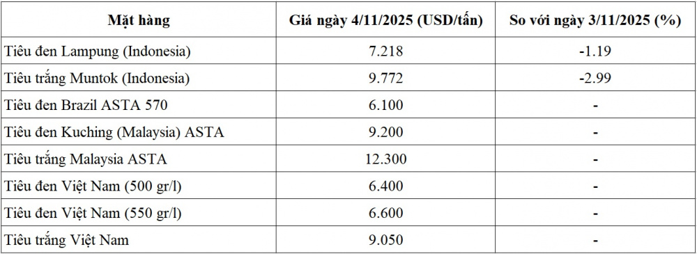 Giá tiêu hôm nay ngày 4/11/2025 tại thị trường thế giới