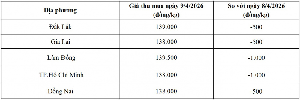 Tham khảo giá tiêu hôm nay ngày 9/4/2026 tại thị trường trong nước (Nguồn: Tạp chí Công Thương tổng hợp)