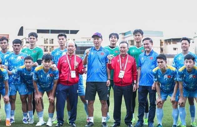 Trước thềm trận đấu quan trọng với U-22 Malaysia tại SEA Games 33, đội tuyển U-22 Việt Nam đã nhận được sự động viên tinh thần từ Trưởng đoàn Thể thao Việt Nam Nguyễn Hồng Minh và Phó đoàn Hoàng Quốc Vinh. Đội trưởng Khuất Văn Khang khẳng định toàn đội sẽ tập trung tối đa để giành chiến thắng.