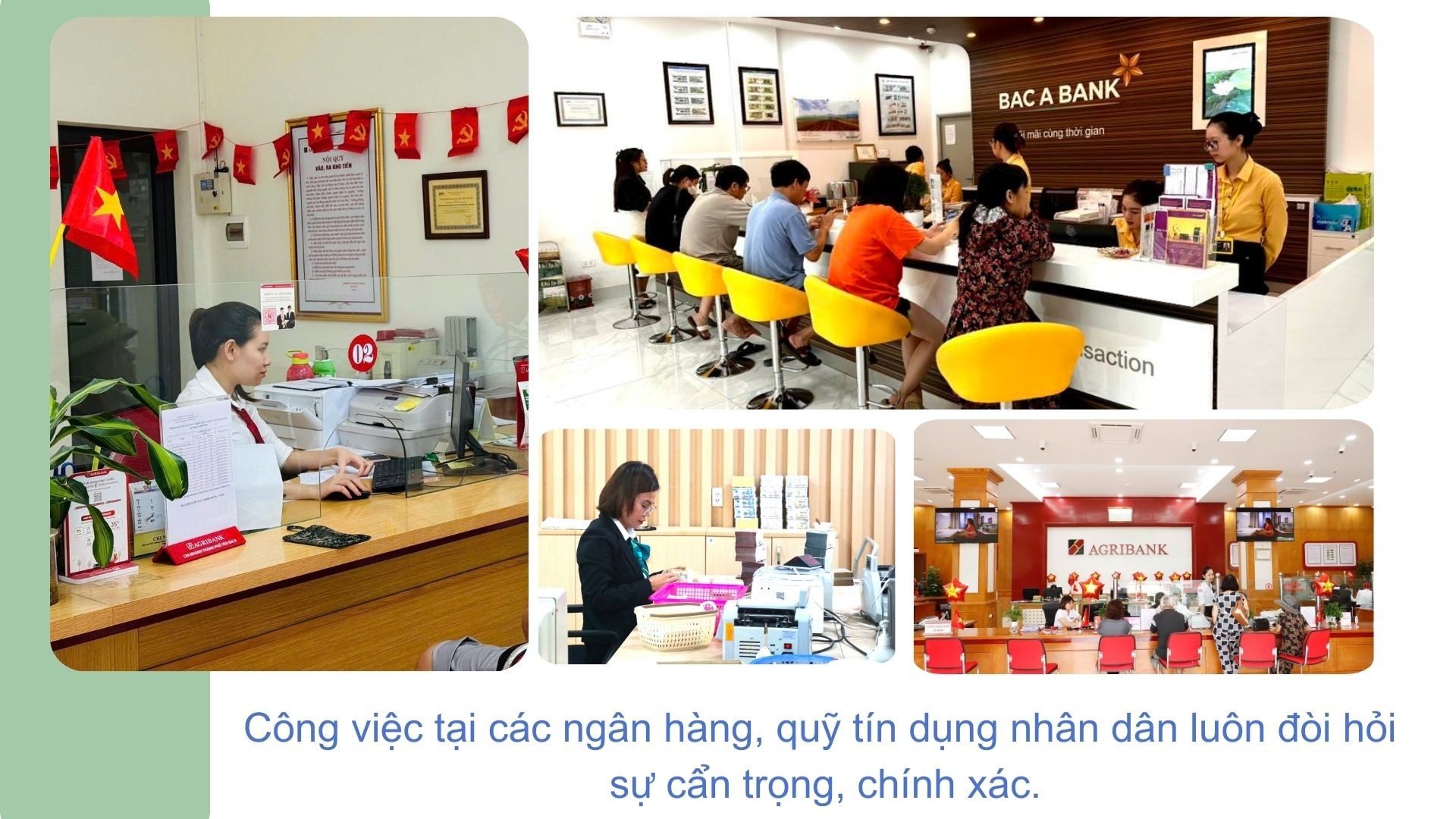 Các giao dịch viên ngân hàng, thủ quỹ là những người tiếp xúc đầu tiên và nhiều nhất với khách hàng, được xem là bộ mặt của ngân hàng. Công việc tiếp xúc với khách hàng đòi hỏi họ phải luôn vui vẻ, tận tình, thể hiện sự chuyên nghiệp. Ngoài ra, trước những món tiền vay, tiền gửi từ vài triệu đồng đến hàng tỷ đồng, lượng giao dịch mỗi ngày lên đến cả trăm tỷ đồng, về thông tin, số liệu.