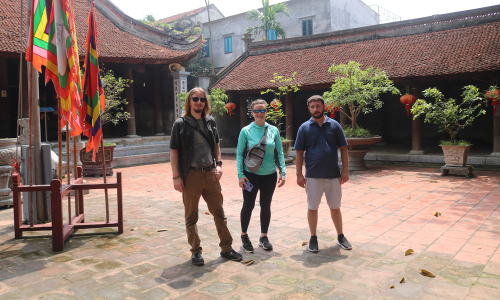 Du khách quốc tế tham quan các di tích tại làng cổ Thổ Hà.