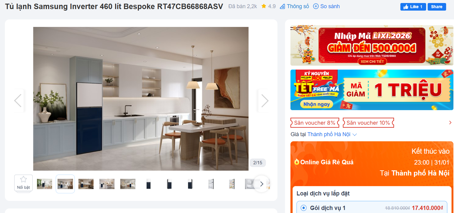 Vào tháng 1/2026, giống như nhiều thương hiệu "đối thủ", giá bán của dòng tủ lạnh Samsung được điều chỉnh giảm trên diện rộng, mức giảm cao nhất lên tới 16 triệu đồng. Theo khảo sát tại các chuỗi bán lẻ và đại lý phân phối, đợt điều chỉnh giá lần này diễn ra ngay sau cao điểm mua sắm cuối năm, thời điểm người tiêu dùng có xu hướng thắt chặt chi tiêu và ưu tiên các sản phẩm thiết yếu hơn.
