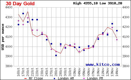 Biểu đồ giá vàng ngày 16/11. (Ảnh: kitco.com)