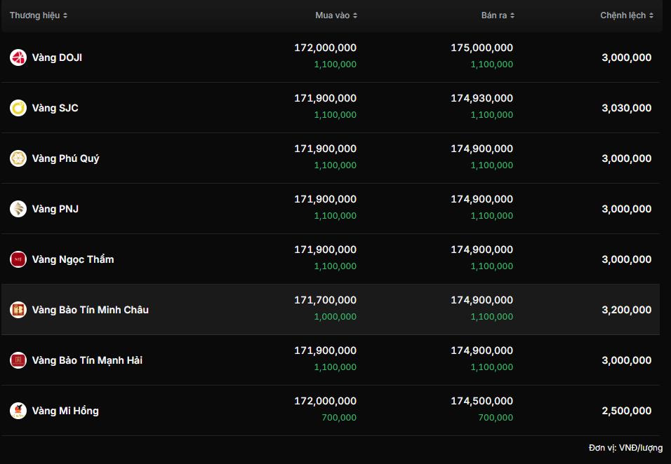 Tại các đơn vị khác như DOJI, Phú Quý và PNJ, giá bán ra phổ biến ở mức 174,9 - 175,0 triệu đồng/lượng. Dù có sự điều chỉnh nhẹ theo nhịp nghỉ của thị trường thế giới (hiện dao động quanh mốc 4.540,5 USD/ounce), nhưng giá vàng trong nước vẫn đang cao hơn giá thế giới quy đổi khoảng 29,5 triệu đồng/lượng. Khoảng cách mua - bán duy trì ở mức 3 triệu đồng/lượng phản ánh tâm lý thận trọng của các doanh nghiệp trước biến động khó lường của kinh tế toàn cầu.