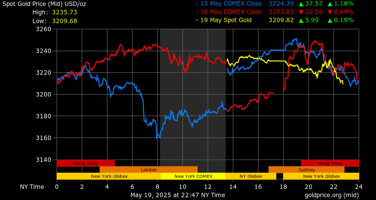 Trên thị trường vàng thế giới, giá vàng giao ngay chốt phiên hôm qua tại Mỹ tăng 26 USD lên mức 3.230,4 USD/ounce. Sang phiên châu Á sáng nay, giá vàng đảo chiều giảm 20,7 USD xuống 3.209,7 USD/ounce.