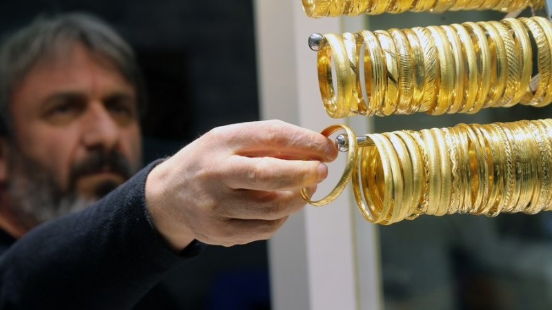 Các sản phẩm vàng tại một cửa hàng trang sức ở Ankara, Thổ Nhĩ Kỳ. (Ảnh: Xinhua)