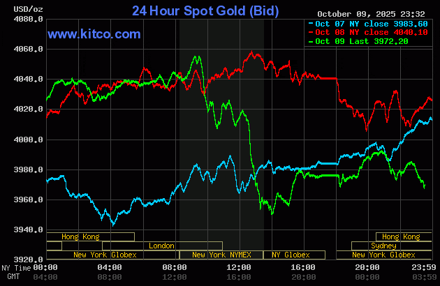 Biểu đồ giá vàng thế giới ngày 10/10. (Ảnh: kitco.com)