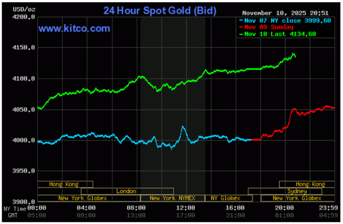 Biểu đồ giá vàng thế giới ngày 11/11. (Ảnh: kitco.com)