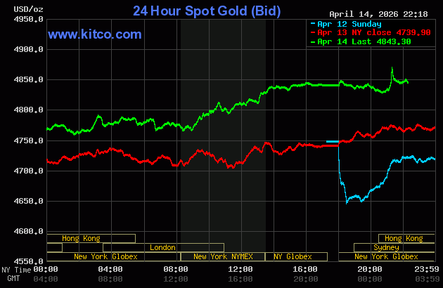 Biểu đồ giá vàng thế giới ngày 15/4. (Ảnh: kitco.com)