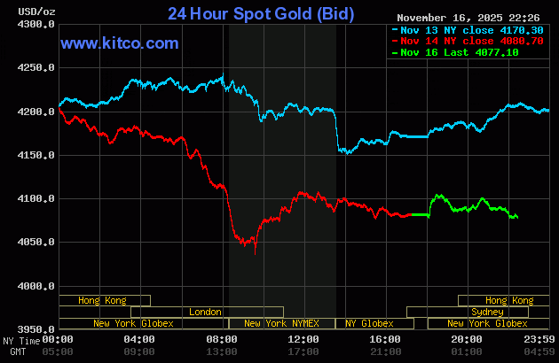 Biểu đồ giá vàng thế giới ngày 17/11. (Ảnh: kitco.com)