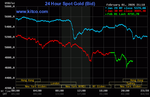 Biểu đồ giá vàng thế giới ngày 2/2. (Ảnh: kitco.com)