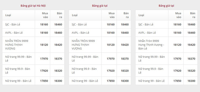 Giá vàng tại Công ty Cổ phần Đầu tư vàng Phú Quý: