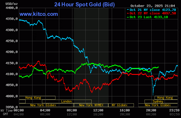 Biểu đồ giá vàng thế giới ngày 24/10. (Ảnh: kitco.com)
