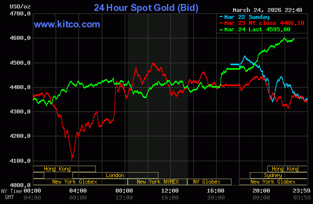 Biểu đồ giá vàng ngày 25/3. (Ảnh: kitco.com)