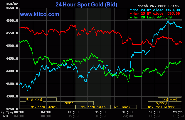 Biểu đồ giá vàng thế giới ngày 27/3. (Ảnh: kitco.com)